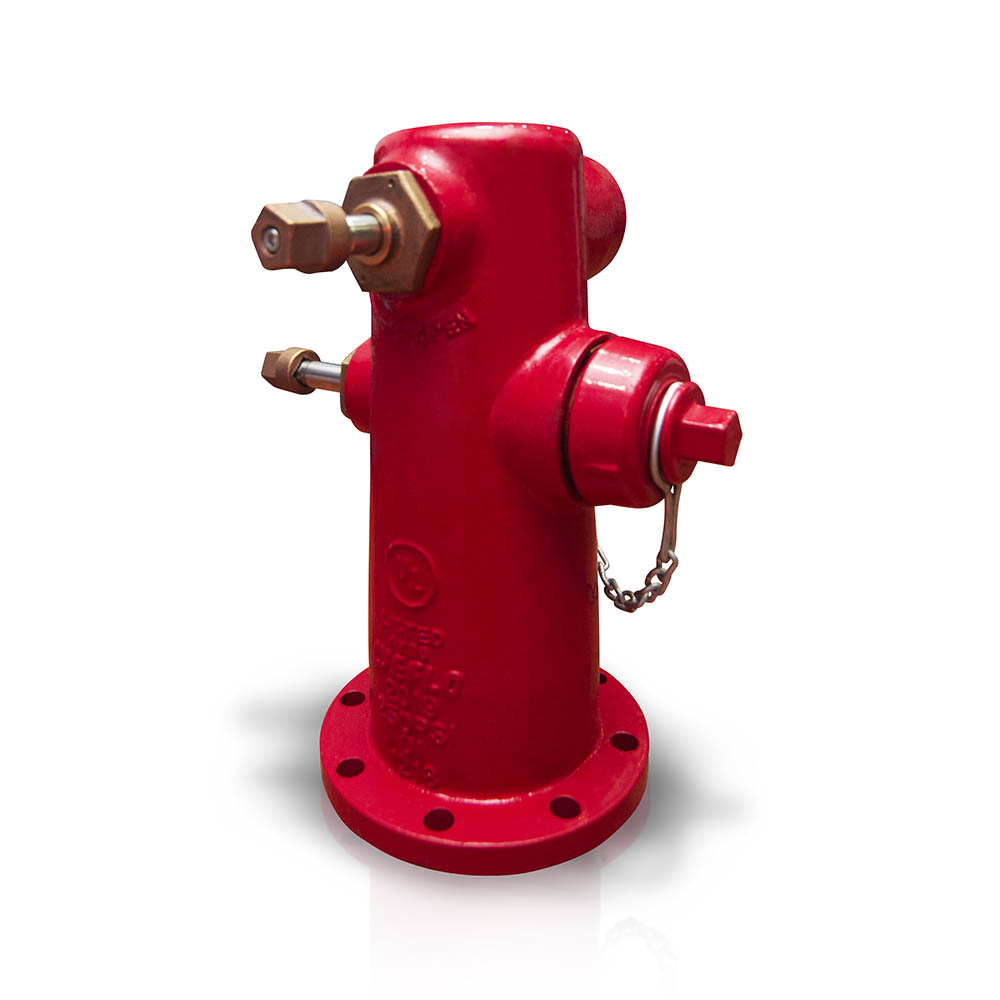 El hidrante húmedo UL/FM/AWWA se fabrica de acuerdo con la norma AWWA C502. Cuerpo en hierro dúctil extra-resistente.Las tomas fabricadas en bronce especial resistente a la corrosión. Brida de entrada ASME B16.1, Class 125 / ASME B16.42, Class 150. Pintados con imprimación y esmalte de poliuretano (Rojo).