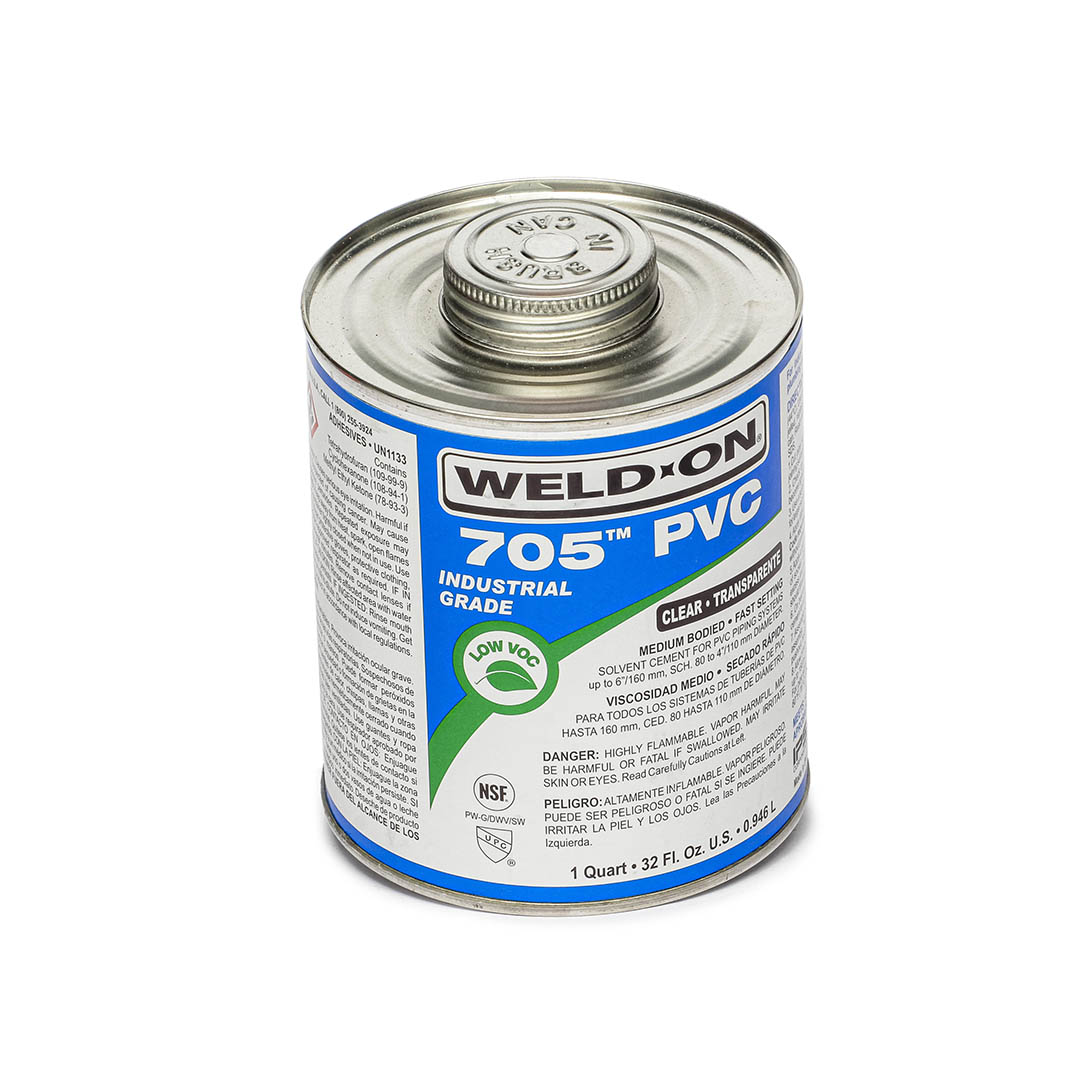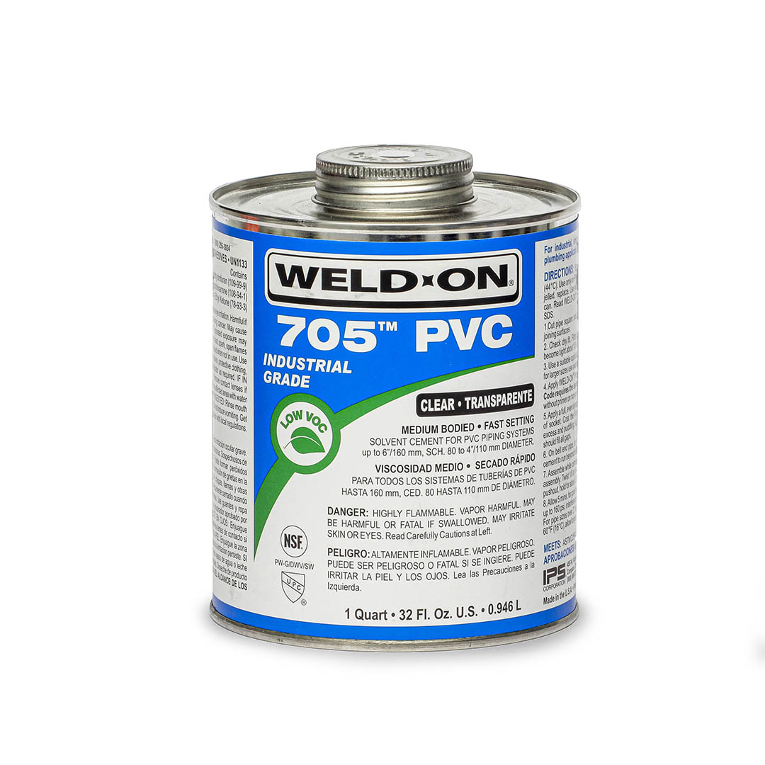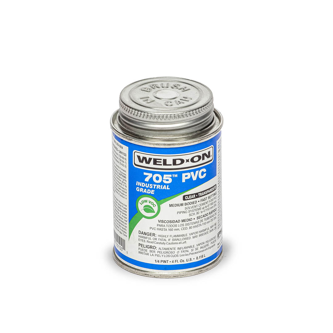 Cemento para PVC de viscosidad media, endurecimiento rápido y VOC bajo para toda clase de tuberías y cédulas. Fórmula de gran resistencia para sistemas industriales, riego, sistemas de desagüe, desperdicios y ventilación, conductos para instalaciones eléctricas, piscinas e hidromasajes y trabajos de plomería; también para tuberías de PVC de núcleo espumado. Se puede utilizar sin imprimador en sistemas sin presión si las normas locales lo permiten.
