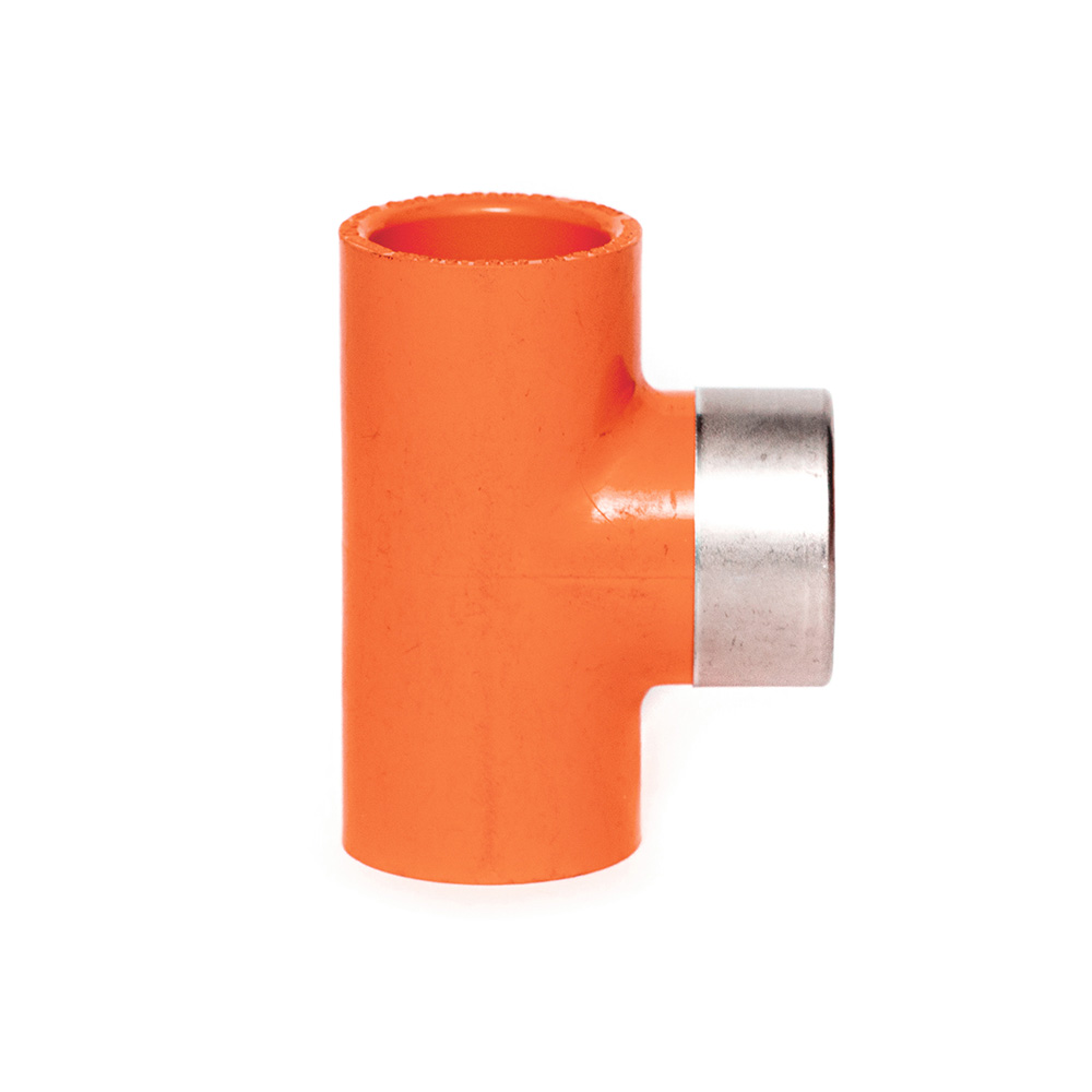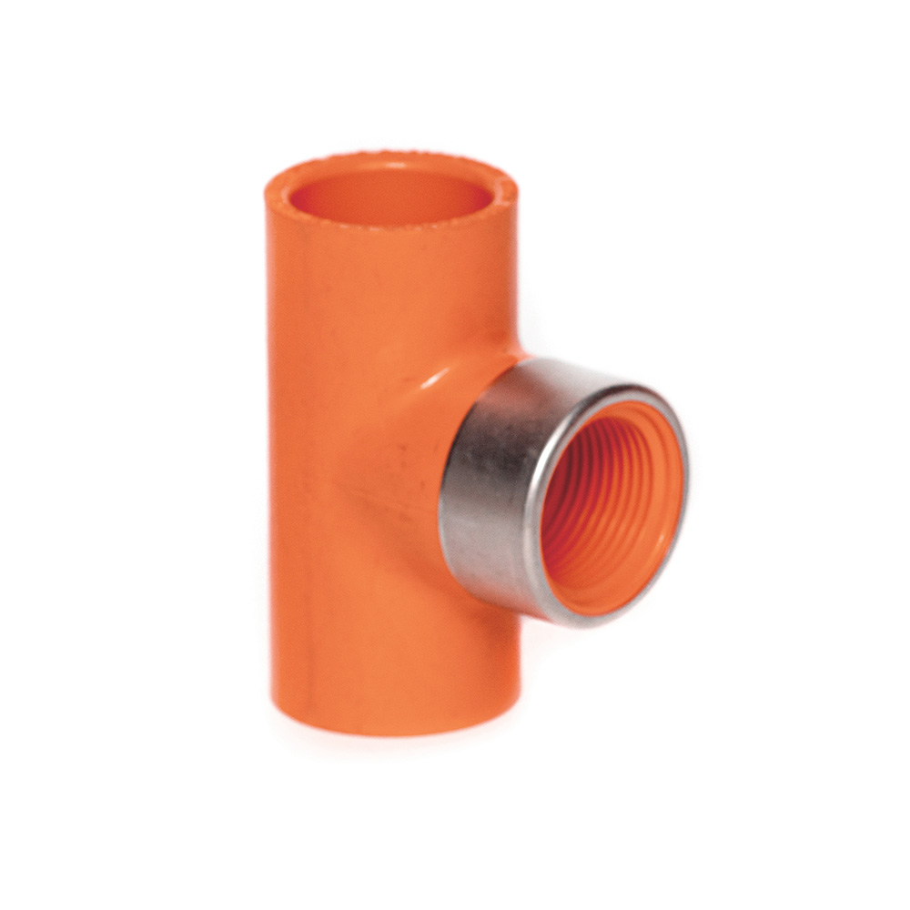 Tee Rociador CPVC BlazeMaster, con derivación inserto hembra en bronce.
