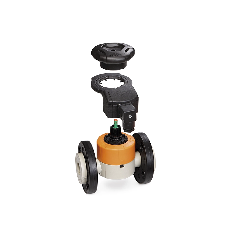 La opción del volante bloqueable ofrece adicional mente una función importante y significativa para todas las áreas operativas de las válvulas de diafragma. Para plantas automatizadas, las válvulas también están disponibles con actuador neumático tipo DIASTAR.